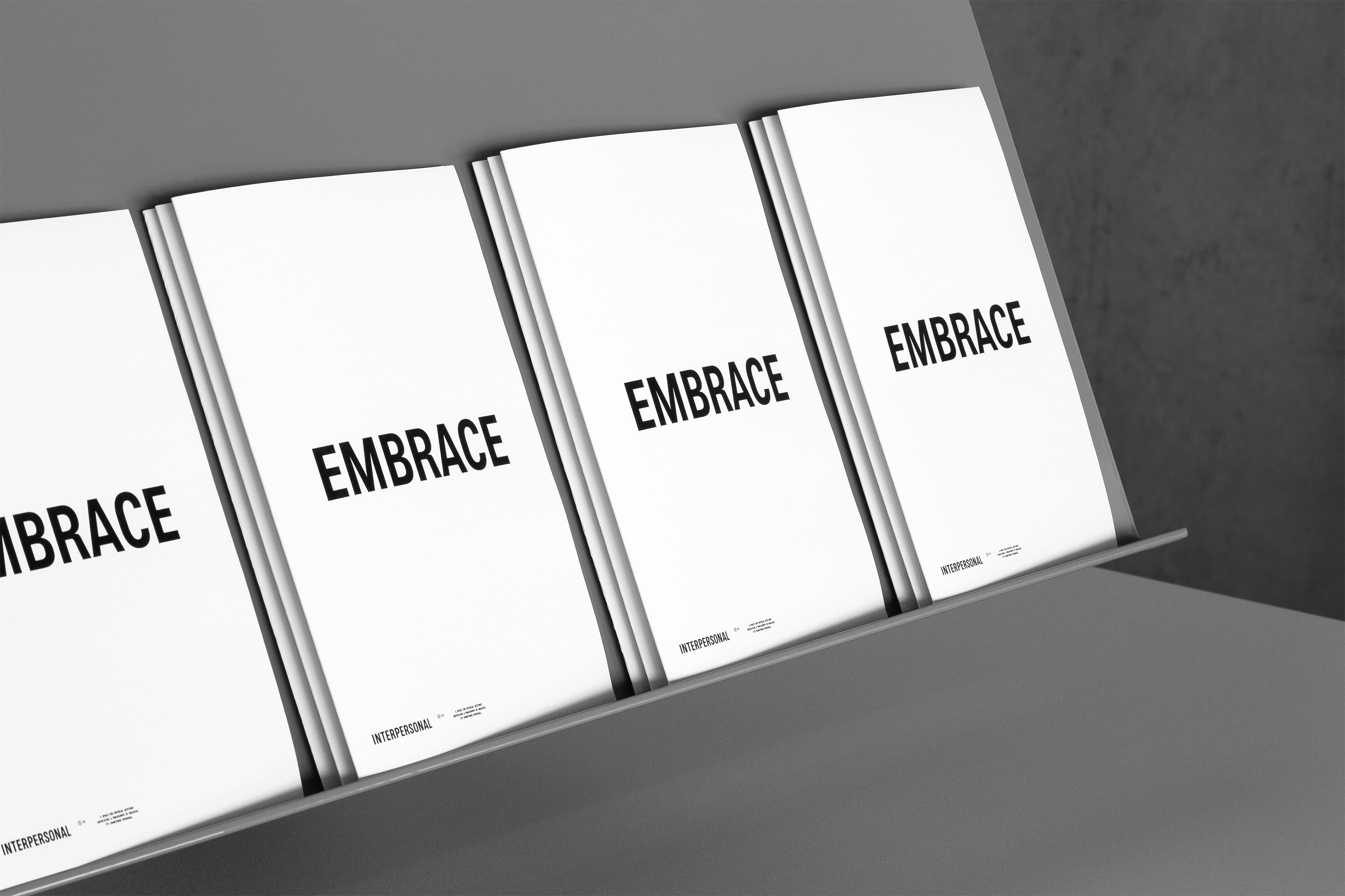 Following the idea of exchange and communication between individuals, this condensed sans-serif and uppercase only typeface presents a tight and intimate relationship of coexisting letters and their horizontal spacing. The neutral foundation and architecture of Interpersonal refers to the substance of communication, its meaning and statement, without abstraction. Available in a second and slightly wider weight, Interpersonal typeface can be used to create strong compositions and accents within its family. Advocating a philosophy of dialog.