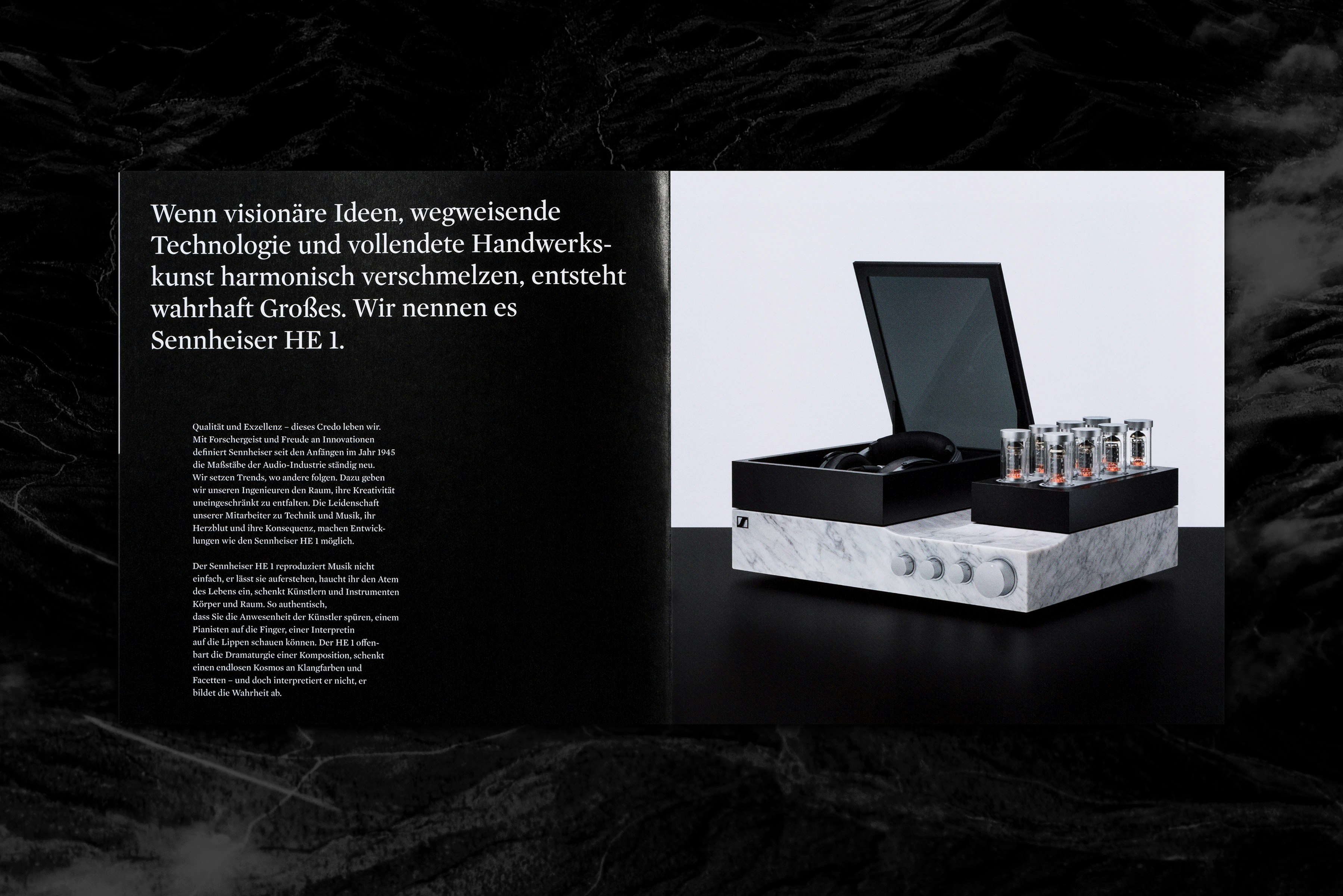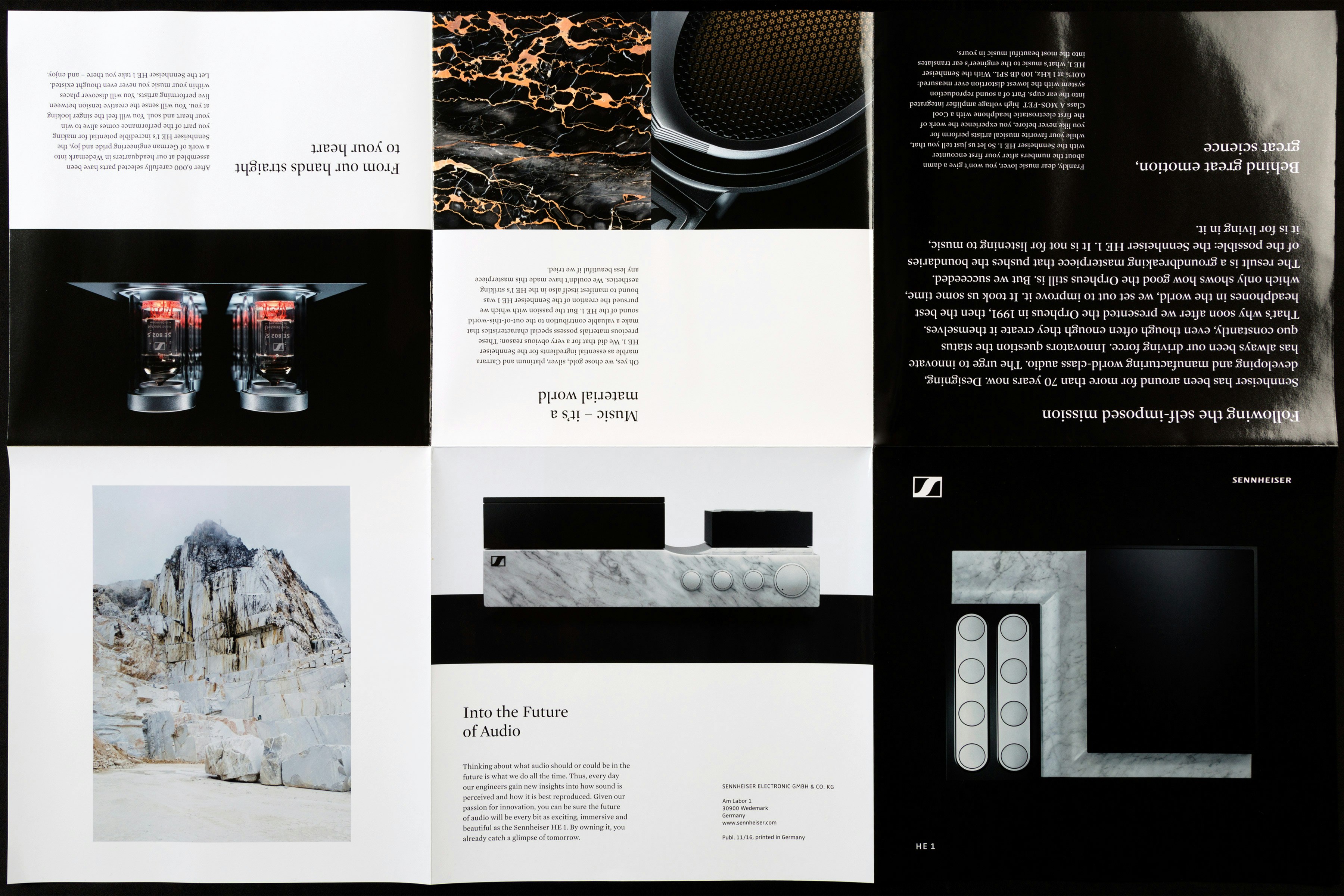 Reshaping excellence - the Sennheiser Orpheus legend reborn. In 1991 Sennheiser created the amazing Orpheus, a unique sound experience. With the HE1, Sennheiser takes its uncompromising philosophy to a new level. We were invited to create the image supplement and inserts.